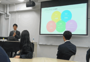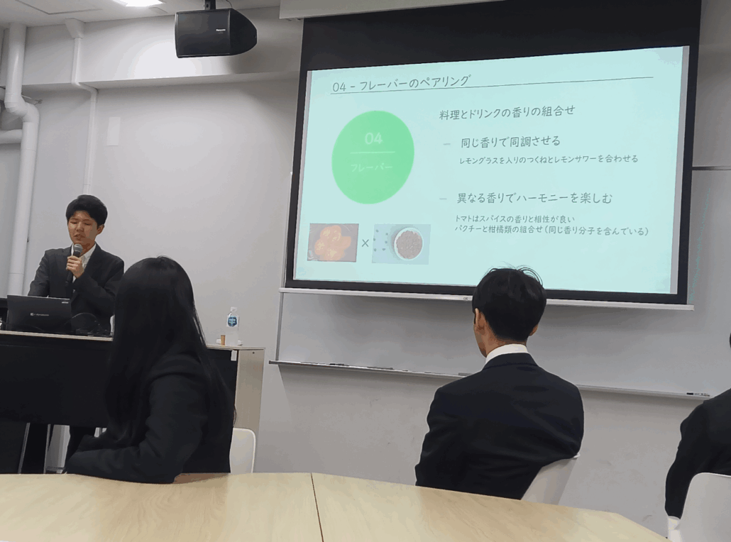 その後、お店で出されている料理にどんな飲み物が合うかをAIが教えてくれるアプリを使ってみて、良い点や改善点をグループで話し合いました。高校生もグループの代表として発表する場面もありました。次回も頑張りたいです!