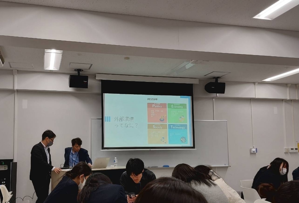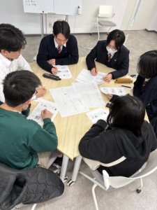 課題研究「夢のキャンパスライフ!」高大連携17回目2025年12月22日/カテゴリ: お知らせ /作成者: RT-076-JYUGtha795h12月12日はAIペアリングについてマーケティング分析を行いました。顧客ニーズや外部環境についての説明を受け、「ファイブフォース分析」や「PEST分析」を行いました。分析が難しく、大学生の先輩にたくさん助けてもらいました。その後、グループの考えを発表していきました。色々な意見が出てきて、聞いていて面白かったです! 担当:杉木・梶田・大原 https://kasugaiizumi-h.ed.jp/wp-content/uploads/2025/12/IMG_7422.jpeg 872 1284 RT-076-JYUGtha795h http://kasugaiizumi-h.ed.jp/wp-content/uploads/2022/11/kik_340_156_WH.png RT-076-JYUGtha795h2025-12-22 17:44:492025-12-22 17:44:49課題研究「夢のキャンパスライフ!」高大連携17回目