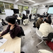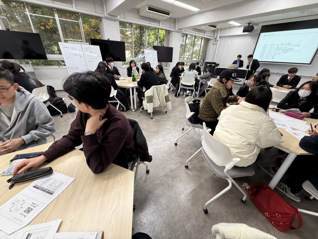 授業の最後は、大学生と協力して「中部大学で飲食店を開くには」というテーマを題材にマーケティングを行いました。企業の方が説明してくれた基礎を生かし、一人一人役割分担をしながら進めることができました。